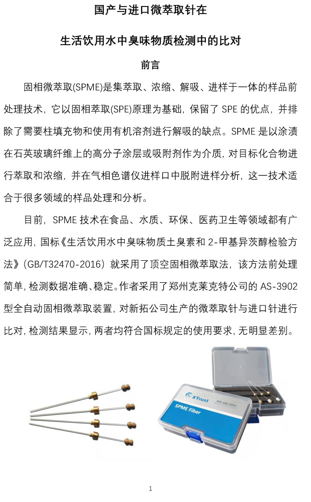 國產(chǎn)與進(jìn)口微萃取針在生活飲用水中臭味物質(zhì)檢測(cè)中的比對(duì)