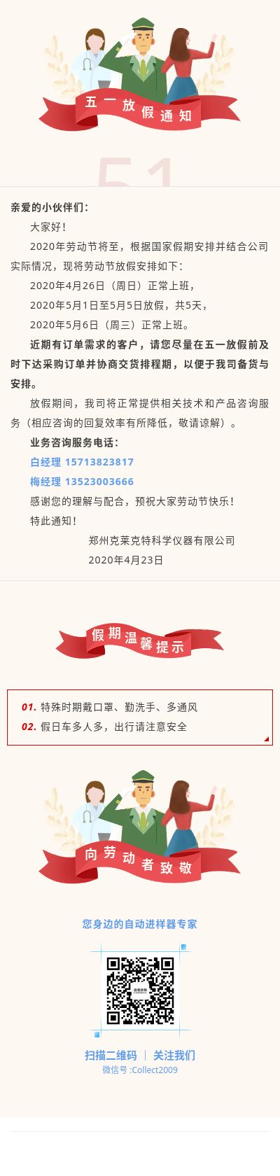 克萊克特 | 2020年五一勞動(dòng)節(jié)放假通知